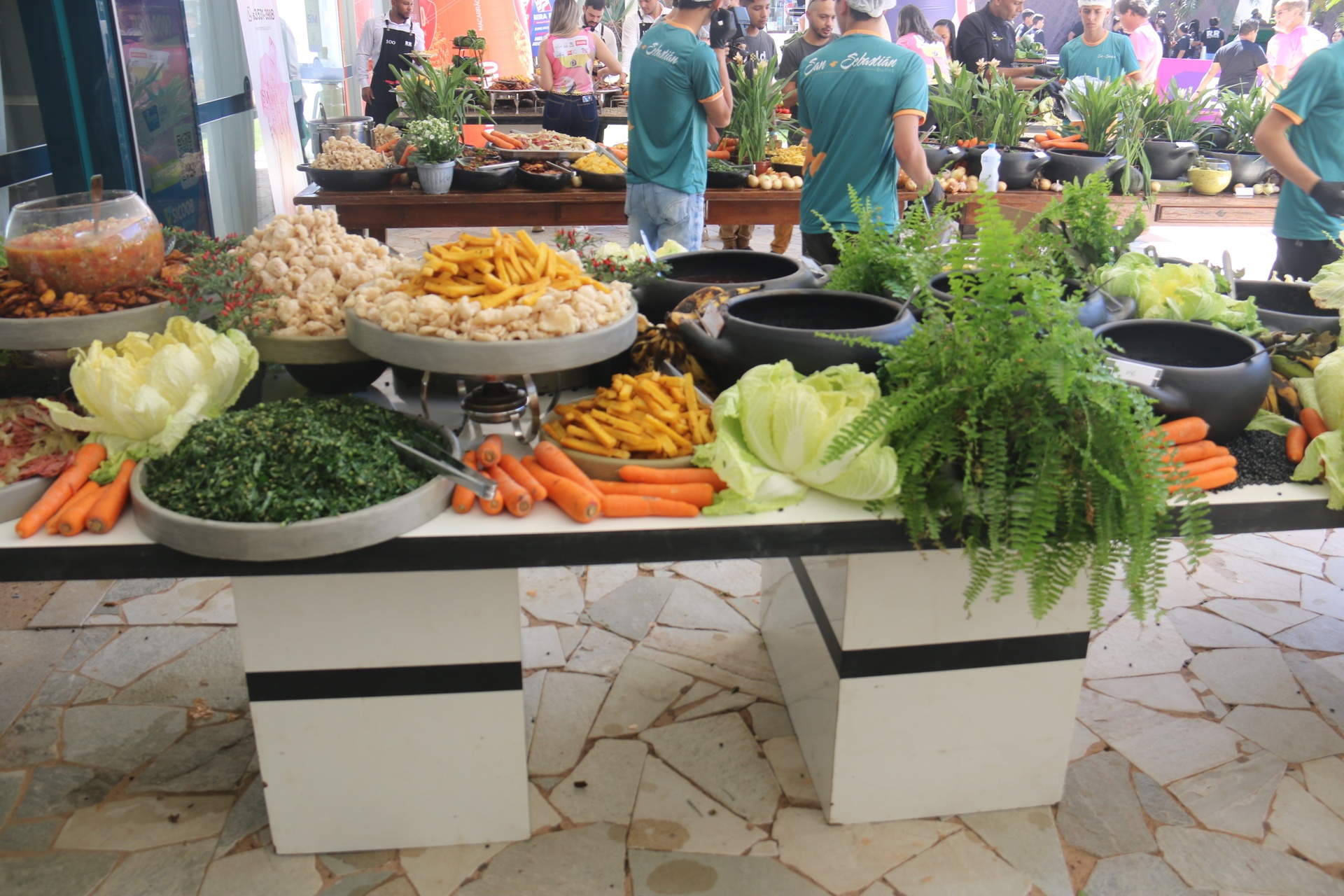 Já o buffett contou é claro com a estrela da festa, a feijoada. Além dela, outras 26 guarnições também foram oferecidas, entre elas: polenta, batata e calabresa fritas, farofa, vinagrete, couve, torresmo entre outras. No decorrer do evento também foram servi outros pratos como hambúrguer, espetinho e doces.
